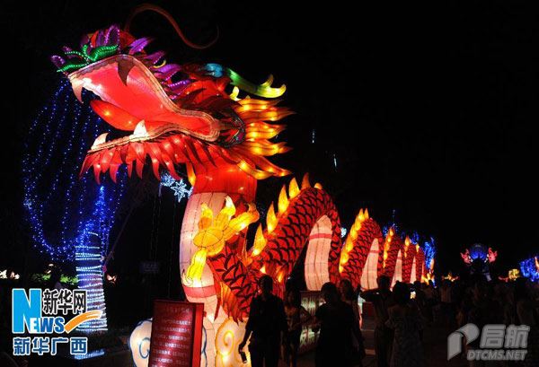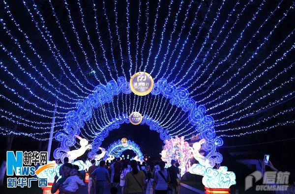 正在广西柳州市园博园举办的“2015中国柳州国际水上狂欢节灯会”吸引众多市民和游人前来观赏。本次灯会邀请了自贡专业彩灯制作团队,共设置50组大中型灯组,将持续到10月7日结束。