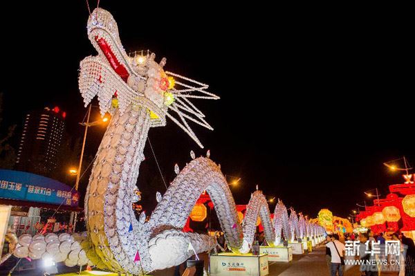 近日,2015中国玉溪“哇家灯会”在云南省玉溪市聂耳文化广场亮灯,110组精美绚丽的彩灯吸引了许多市民与游客前来观赏。据介绍,本届灯会以“‘一带一路’玉溪行”为主题,引入“哇家”乡愁记忆,复原“新兴州”老城墙、城门,并开展“冰雕艺术节”“哇家舞林会”等多项特色活动,本届灯会将持续至10月25日。新华社记者 胡超 摄