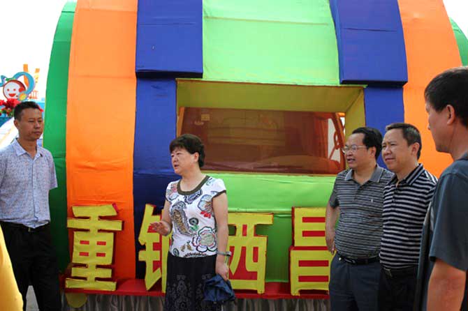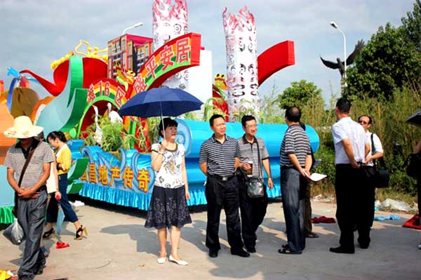 2011年7月24日上午9点,西昌市戴副市长率队到2011西昌火把节花车制作现场进行视察,详细了解了花车制作情况,并对花车制作的工艺和质量表示肯定和赞扬,同时提出了宝贵的意见。