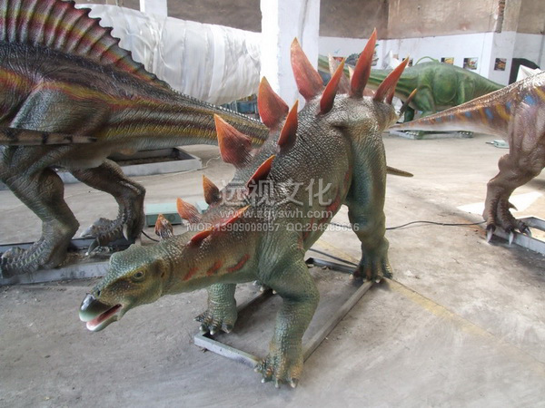 名 称:仿真恐龙 品 种:剑龙 食 性:草食 年 代:晚侏罗纪 原始尺寸:12米 产品尺寸:8米 常做尺寸:4-8米(可按客户要求尺寸定做) 制作材料:钢材、高密度海绵、纤维、硅胶 功 能:张嘴、眨眼、头上下、头左右、呼吸、摆尾、叫声 声 音:仿生恐龙叫声(可按客户要求配音) 电 压:110/220 VAC 50/60HZ 功 率:1200W 控 制:单片机 启动方式:红外线启动、遥控启动、按钮启动、投币器启动 制作周期:15天 产 地:四川 自贡