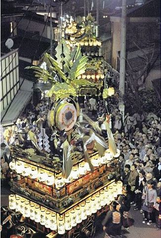 用灯笼装扮, 绚烂奢华的彩车行进在宵祭中